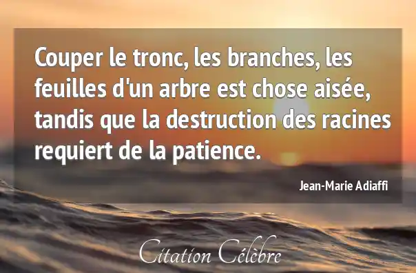 Couper le tronc, les branches, les feuilles d'un arbre est chose aisée, tandis que la destruction des racines requiert de la patience.