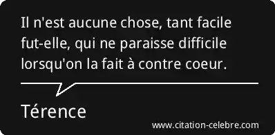 Il n'est aucune chose, tant facile fut-elle, qui ne paraisse difficile lorsqu'on la fait à contre coeur.