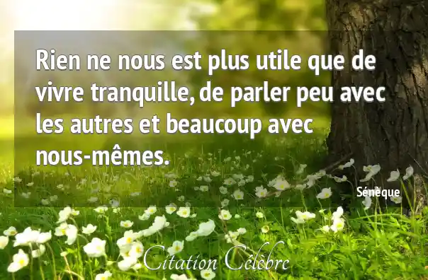 Rien ne nous est plus utile que de vivre tranquille, de parler peu avec les autres et beaucoup avec nous-mêmes.