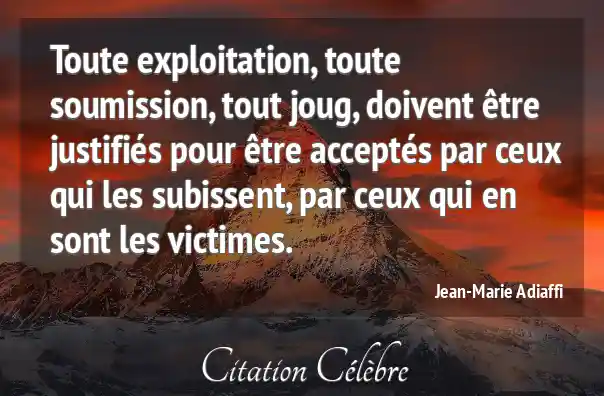 Toute exploitation, toute soumission, tout joug, doivent être justifiés pour être acceptés par ceux qui les subissent, par ceux qui en sont les victimes.