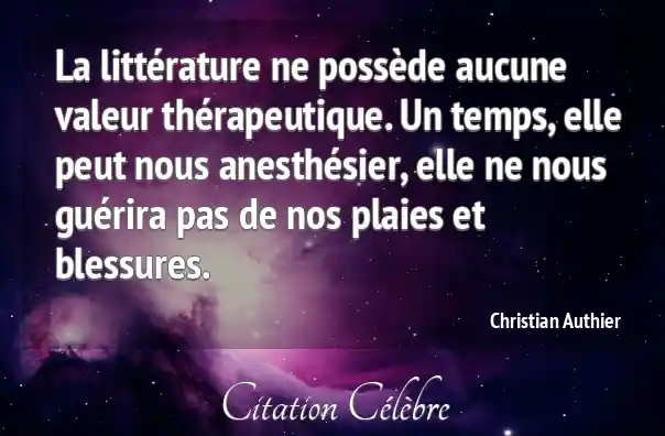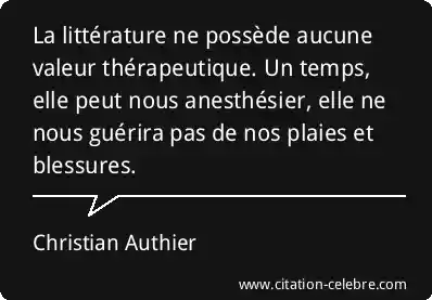La littérature ne possède aucune valeur thérapeutique. Un temps, elle peut nous anesthésier, elle ne nous guérira pas de nos plaies et blessures.