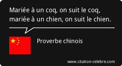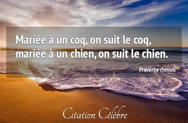 Mariée à un coq, on suit le coq, mariée à un chien, on suit le chien.