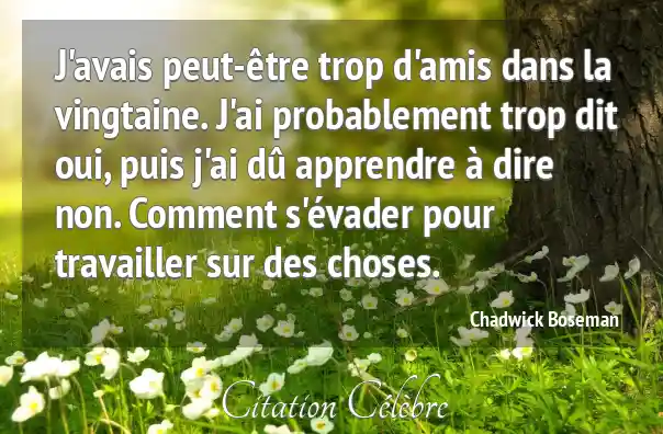 J'avais peut-être trop d'amis dans la vingtaine. J'ai probablement trop dit oui, puis j'ai dû apprendre à dire non. Comment s'évader pour travailler sur des choses.