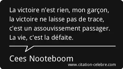 La victoire n'est rien, mon garçon, la victoire ne laisse pas de trace, c'est un assouvissement passager. La vie, c'est la défaite.