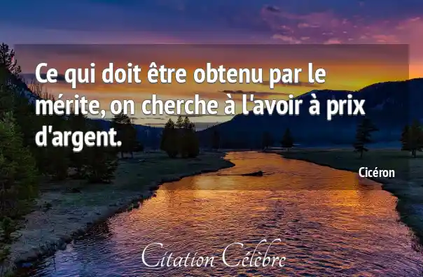 Ce qui doit être obtenu par le mérite, on cherche à l'avoir à prix d'argent.
