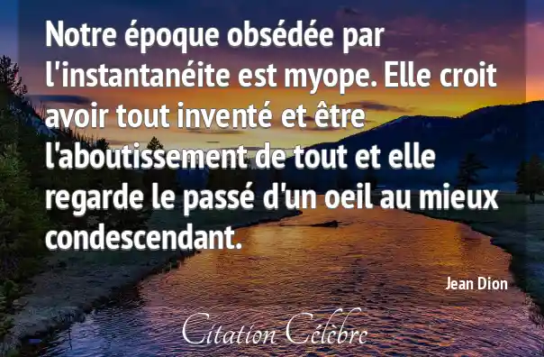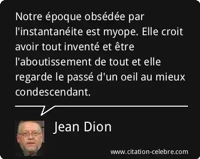 Notre époque obsédée par l'instantanéite est myope. Elle croit avoir tout inventé et être l'aboutissement de tout et elle regarde le passé d'un oeil au mieux condescendant.