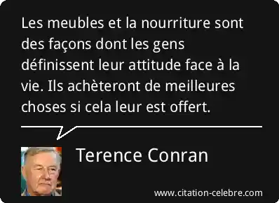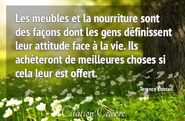Les meubles et la nourriture sont des façons dont les gens définissent leur attitude face à la vie. Ils achèteront de meilleures choses si cela leur est offert.