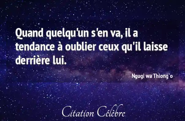 Quand quelqu'un s'en va, il a tendance à oublier ceux qu'il laisse derrière lui.