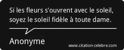 Si les fleurs s'ouvrent avec le soleil, soyez le soleil fidèle à toute dame.