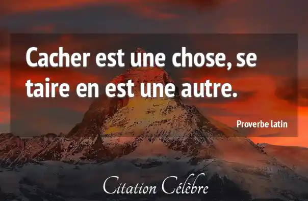 Proverbe  Latin Chose : Cacher est une chose, se taire en est une autre....
