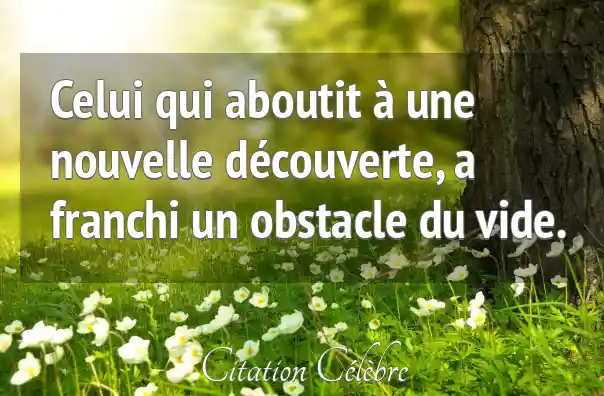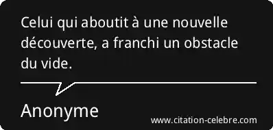 Celui qui aboutit à une nouvelle découverte, a franchi un obstacle du vide.