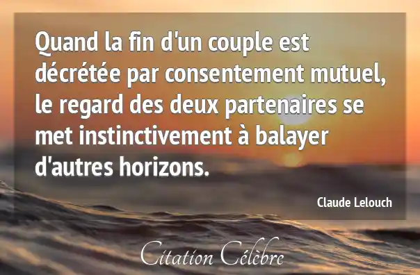Quand la fin d'un couple est décrétée par consentement mutuel, le regard des deux partenaires se met instinctivement à balayer d'autres horizons.