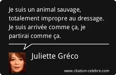 Je suis un animal sauvage, totalement impropre au dressage. Je suis arrivée comme ça, je partirai comme ça.