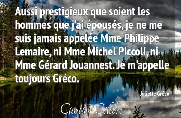 Aussi prestigieux que soient les hommes que j'ai épousés, je ne me suis jamais appelée Mme Philippe Lemaire, ni Mme Michel Piccoli, ni Mme Gérard Jouannest. Je m'appelle toujours Gréco.