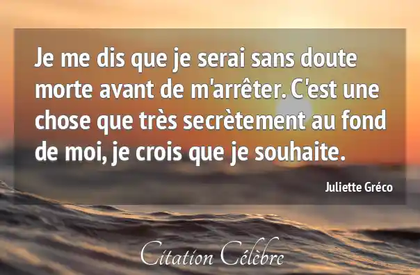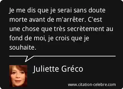 Je me dis que je serai sans doute morte avant de m'arrêter. C'est une chose que très secrètement au fond de moi, je crois que je souhaite.
