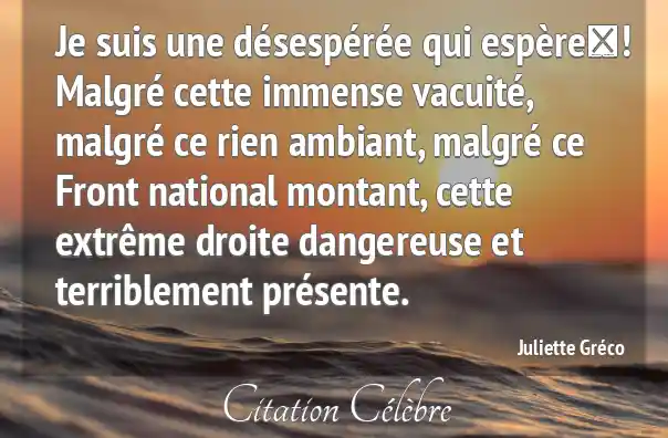 Je suis une désespérée qui espère ! Malgré cette immense vacuité, malgré ce rien ambiant, malgré ce Front national montant, cette extrême droite dangereuse et terriblement présente.