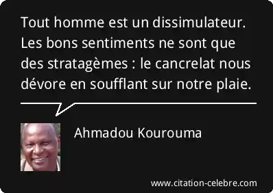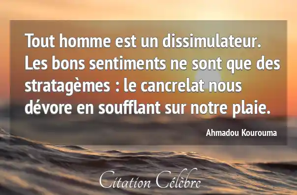 Tout homme est un dissimulateur. Les bons sentiments ne sont que des stratagèmes : le cancrelat nous dévore en soufflant sur notre plaie.