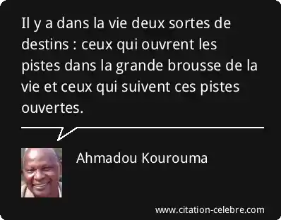 Il y a dans la vie deux sortes de destins : ceux qui ouvrent les pistes dans la grande brousse de la vie et ceux qui suivent ces pistes ouvertes.