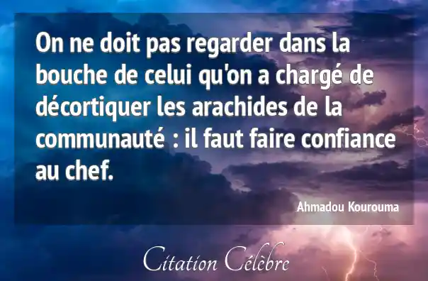On ne doit pas regarder dans la bouche de celui qu'on a chargé de décortiquer les arachides de la communauté : il faut faire confiance au chef.