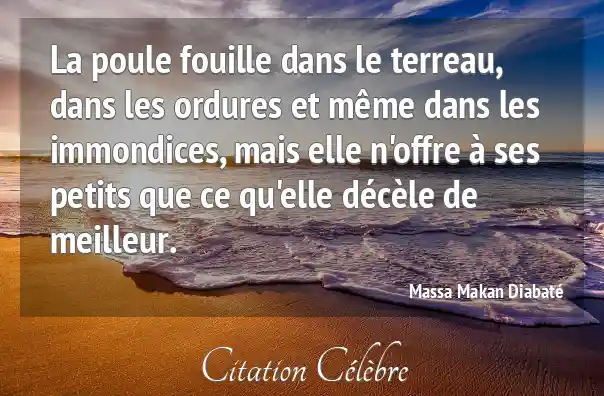 La poule fouille dans le terreau, dans les ordures et même dans les immondices, mais elle n'offre à ses petits que ce qu'elle décèle de meilleur.