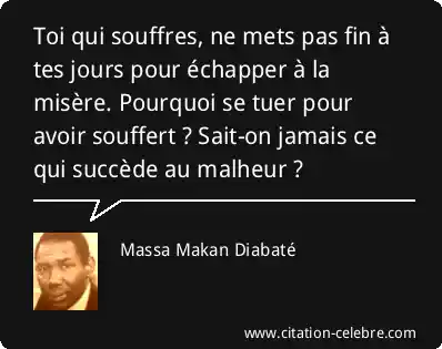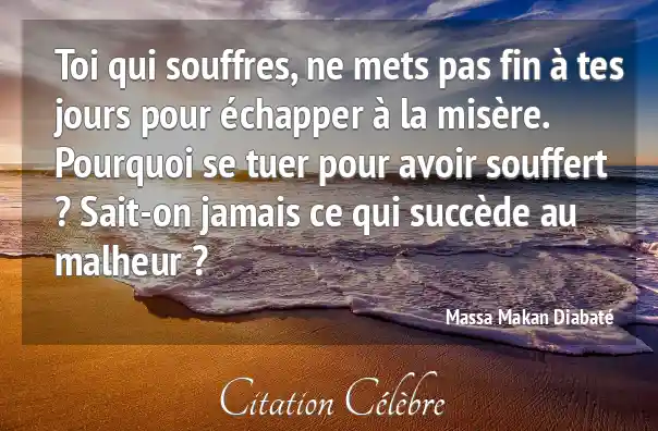 Toi qui souffres, ne mets pas fin à tes jours pour échapper à la misère. Pourquoi se tuer pour avoir souffert ? Sait-on jamais ce qui succède au malheur ?