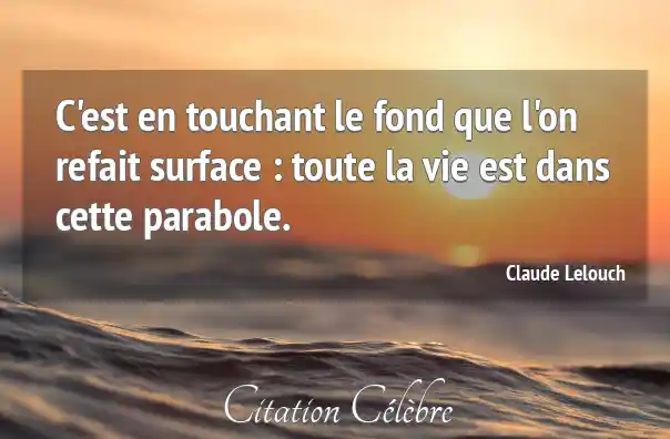 C'est en touchant le fond que l'on refait surface : toute la vie est dans cette parabole.