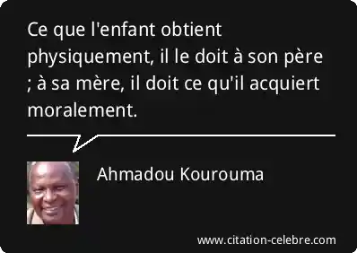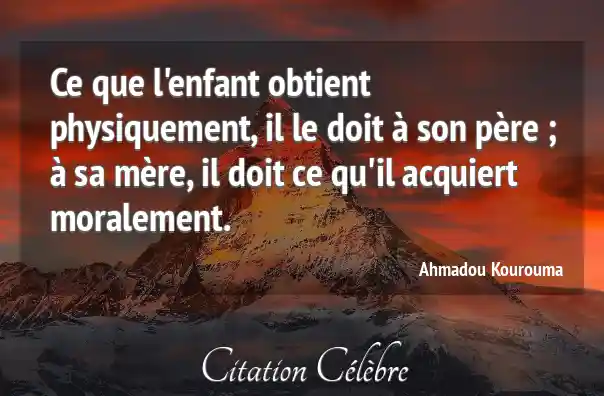 Ce que l'enfant obtient physiquement, il le doit à son père ; à sa mère, il doit ce qu'il acquiert moralement.