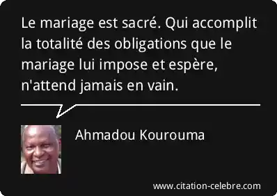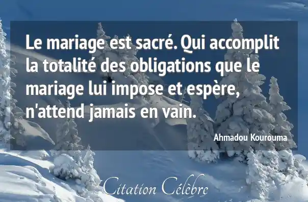 Le mariage est sacré. Qui accomplit la totalité des obligations que le mariage lui impose et espère, n'attend jamais en vain.