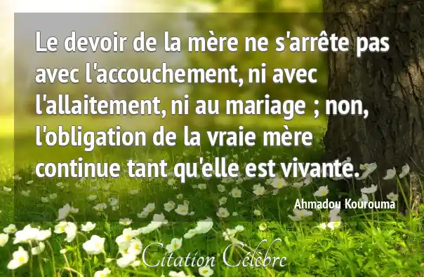 Le devoir de la mère ne s'arrête pas avec l'accouchement, ni avec l'allaitement, ni au mariage ; non, l'obligation de la vraie mère continue tant qu'elle est vivante.