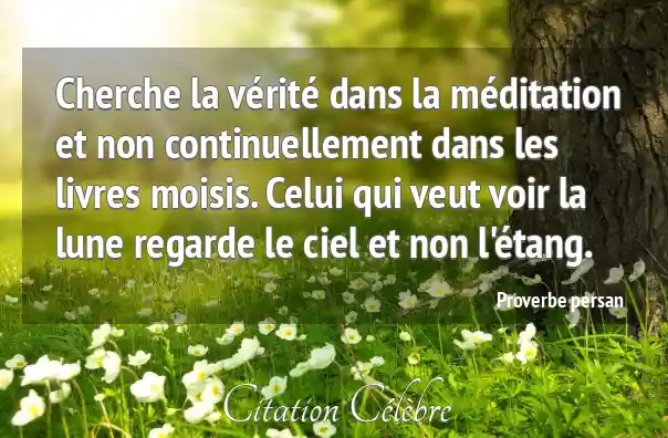 Cherche la vérité dans la méditation et non continuellement dans les livres moisis. Celui qui veut voir la lune regarde le ciel et non l'étang.