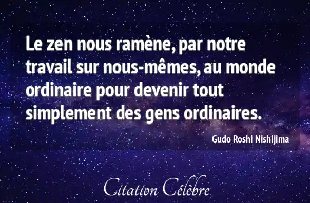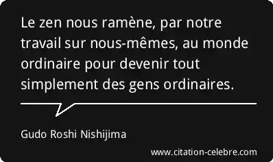 Le zen nous ramène, par notre travail sur nous-mêmes, au monde ordinaire pour devenir tout simplement des gens ordinaires.