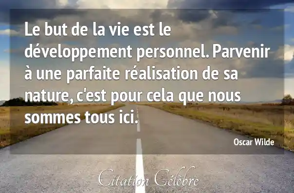 Le but de la vie est le développement personnel. Parvenir à une parfaite réalisation de sa nature, c'est pour cela que nous sommes tous ici.