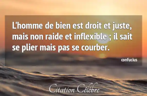 L'homme de bien est droit et juste, mais non raide et inflexible ; il sait se plier mais pas se courber.