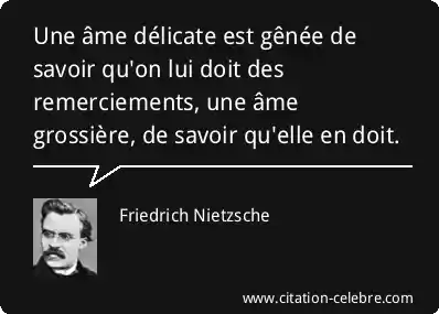 Une âme délicate est gênée de savoir qu'on lui doit des remerciements, une âme grossière, de savoir qu'elle en doit.