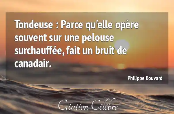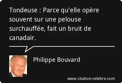 Tondeuse : Parce qu'elle opère souvent sur une pelouse surchauffée, fait un bruit de canadair.
