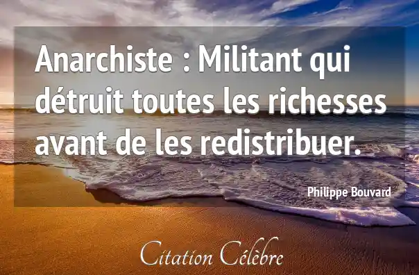 Anarchiste : Militant qui détruit toutes les richesses avant de les redistribuer.