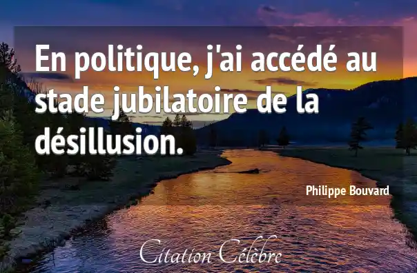 En politique, j'ai accédé au stade jubilatoire de la désillusion.