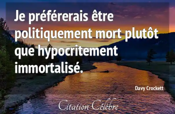 Je préférerais être politiquement mort plutôt que hypocritement immortalisé.