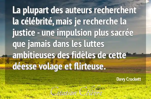 La plupart des auteurs recherchent la célébrité, mais je recherche la justice - une impulsion plus sacrée que jamais dans les luttes ambitieuses des fidèles de cette déesse volage et flirteuse.