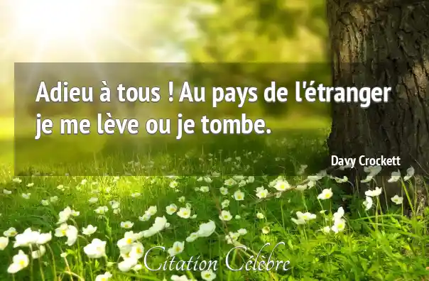 Adieu à tous ! Au pays de l'étranger je me lève ou je tombe.