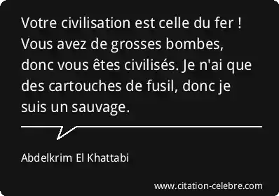 Votre civilisation est celle du fer ! Vous avez de grosses bombes, donc vous êtes civilisés. Je n'ai que des cartouches de fusil, donc je suis un sauvage.