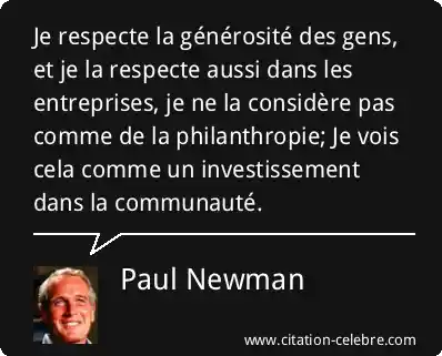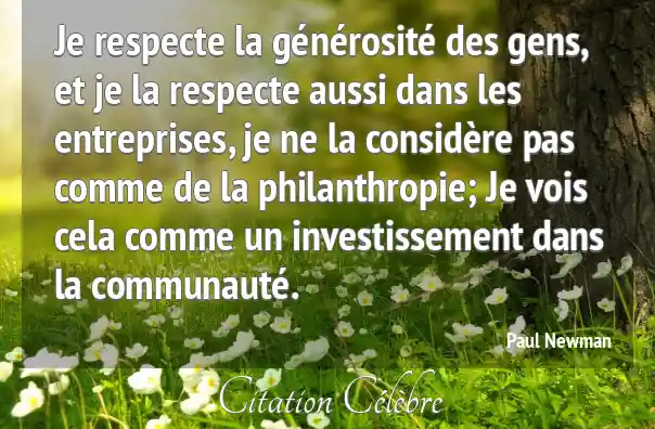 Je respecte la générosité des gens, et je la respecte aussi dans les entreprises, je ne la considère pas comme de la philanthropie; Je vois cela comme un investissement dans la communauté.