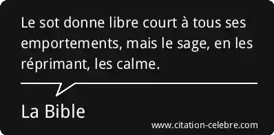 Le sot donne libre court à tous ses emportements, mais le sage, en les réprimant, les calme.