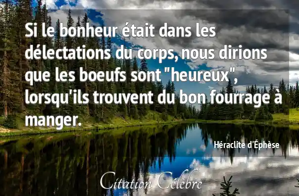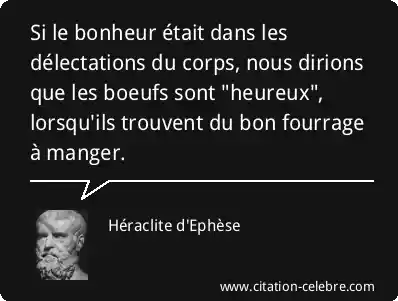 Si le bonheur était dans les délectations du corps, nous dirions que les boeufs sont "heureux", lorsqu'ils trouvent du bon fourrage à manger.