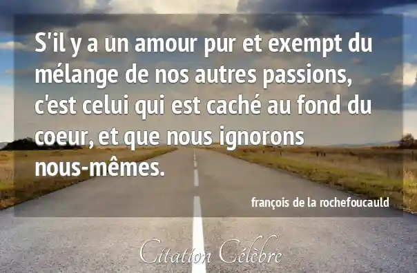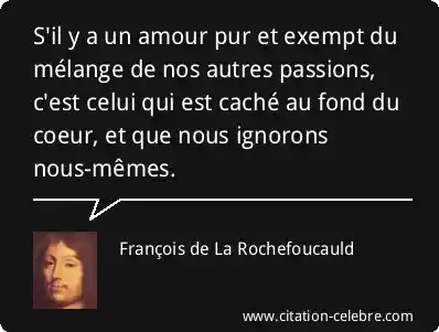 S'il y a un amour pur et exempt du mélange de nos autres passions, c'est celui qui est caché au fond du coeur, et que nous ignorons nous-mêmes.