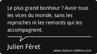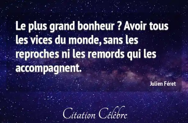Le plus grand bonheur ? Avoir tous les vices du monde, sans les reproches ni les remords qui les accompagnent.