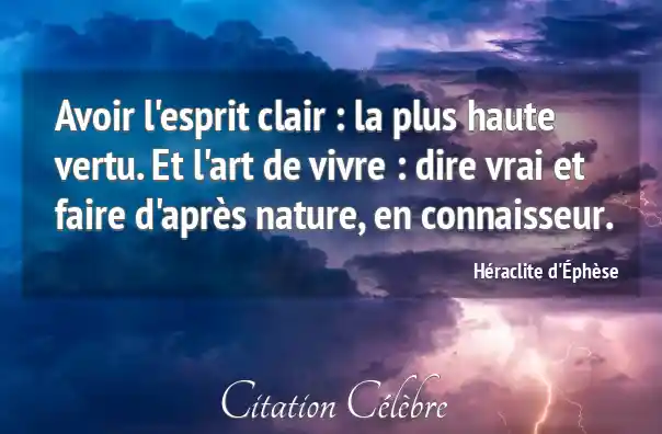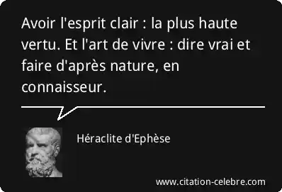 Avoir l'esprit clair : la plus haute vertu. Et l'art de vivre : dire vrai et faire d'après nature, en connaisseur.