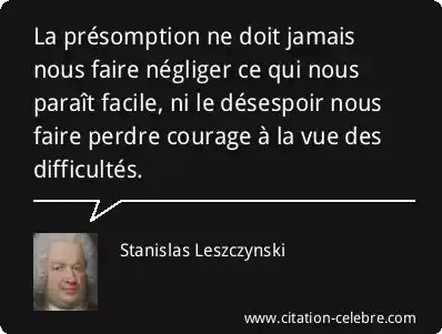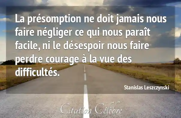 La présomption ne doit jamais nous faire négliger ce qui nous paraît facile, ni le désespoir nous faire perdre courage à la vue des difficultés.