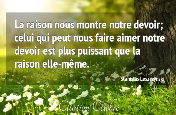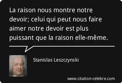 La raison nous montre notre devoir; celui qui peut nous faire aimer notre devoir est plus puissant que la raison elle-même.