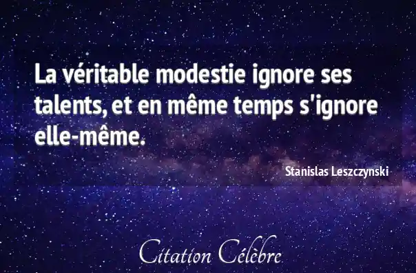 La véritable modestie ignore ses talents, et en même temps s'ignore elle-même.